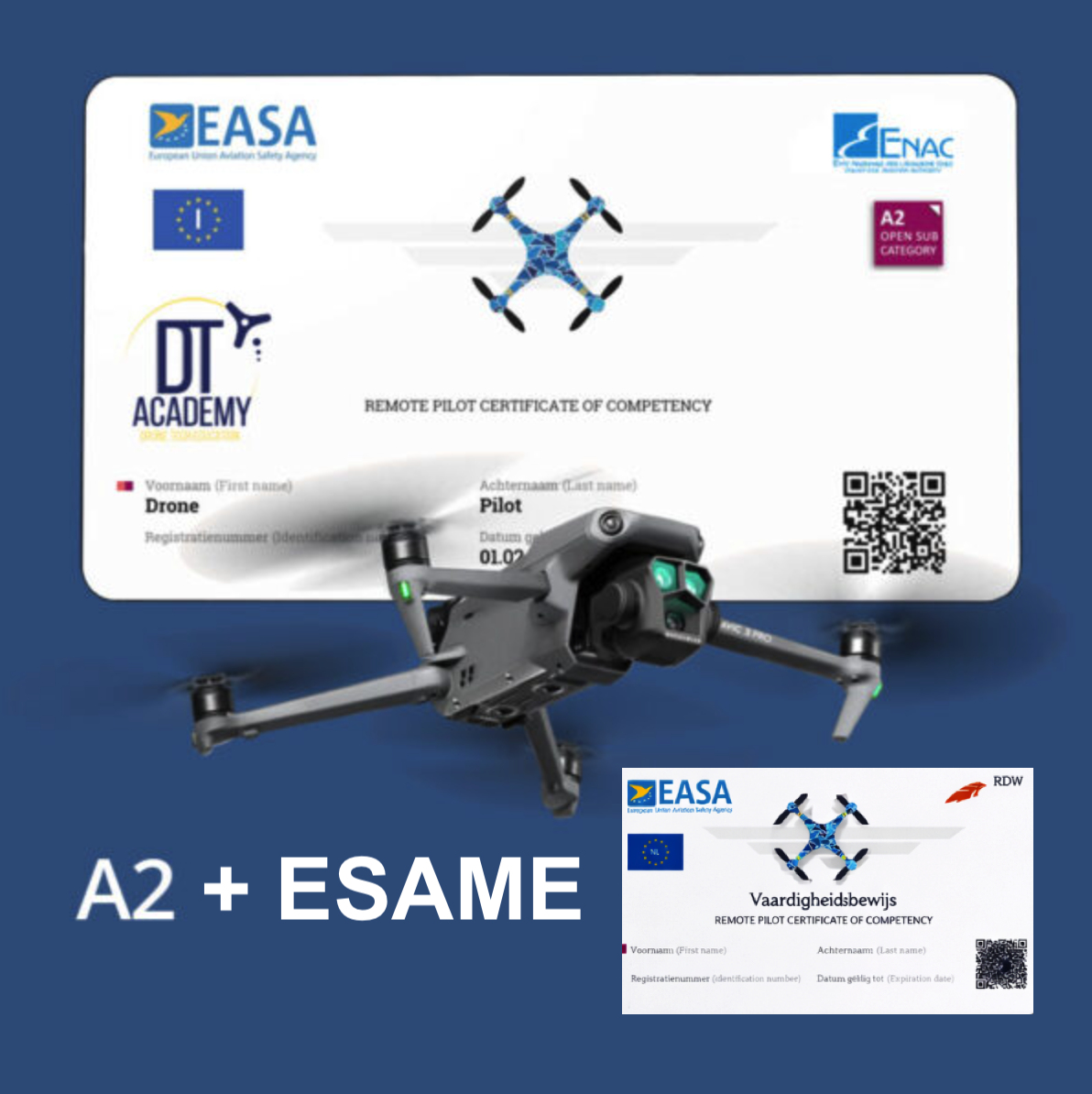 - Fornire le competenze necessarie per operare droni nella sottocategoria A2 della categoria Open.